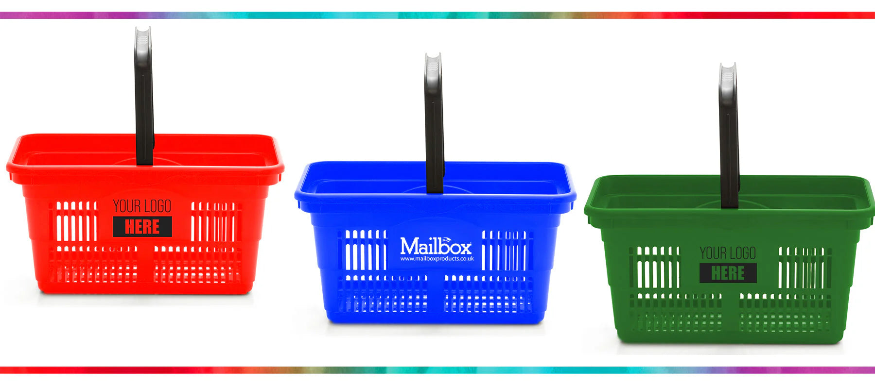 Shopping baskets are a great way to reinforce your brand identity, and at Mailbox Products we offer a range of colours and personalisation options to suit every retail outlet. Robust, durable and easy to carry, our baskets look good on every arm.